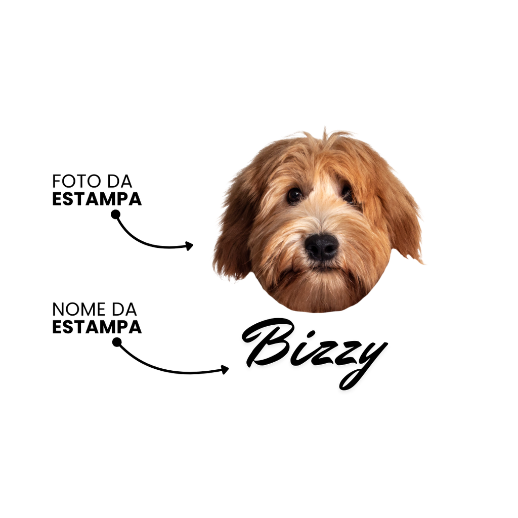 Basta enviar a foto do cachorro e o nome desejado que nós criamos uma estampa exclusiva, do jeitinho que ele merece.